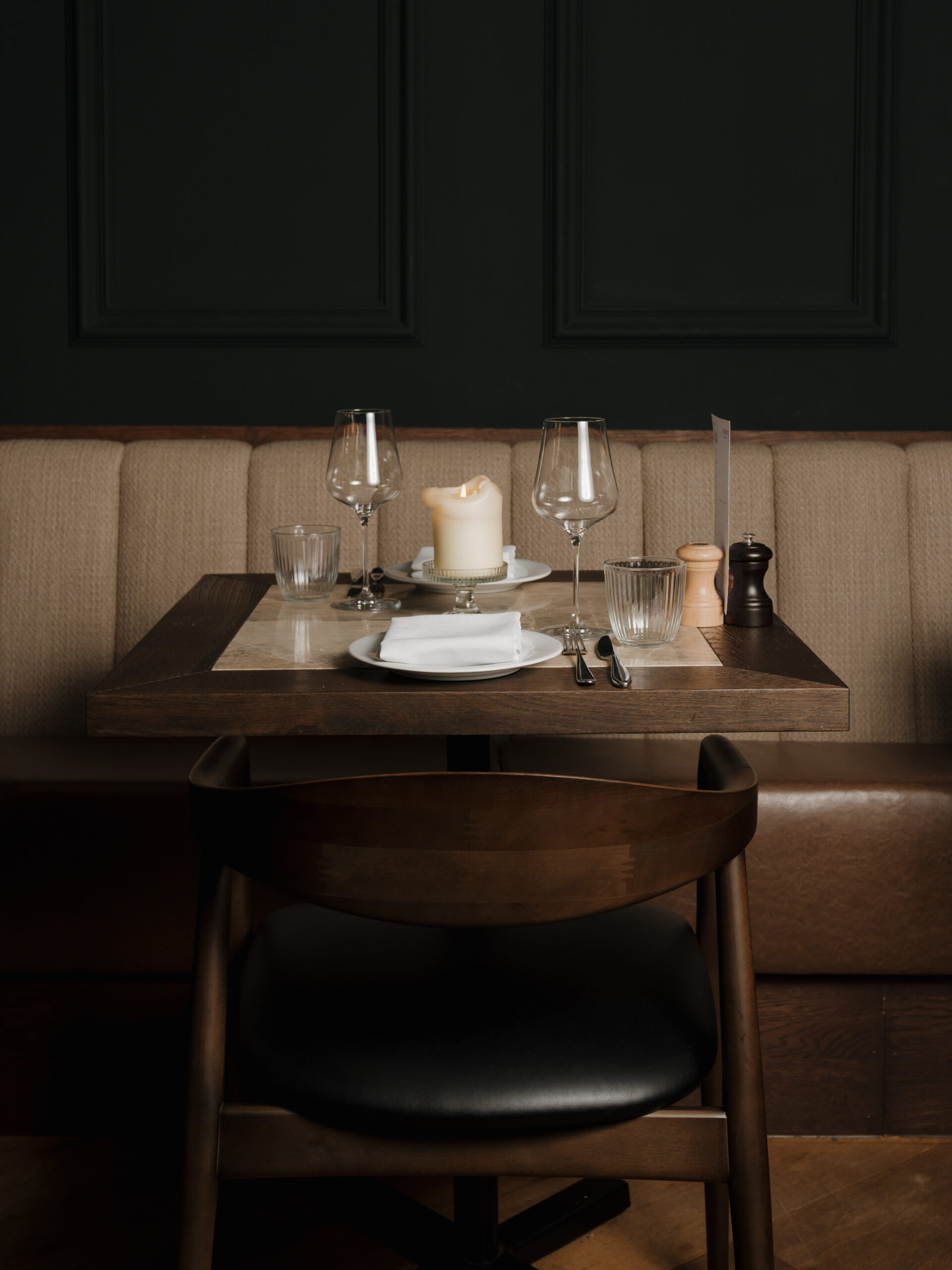De inrichting van Restobar Harvey in Rijswijk weerspiegelt de visie van de ondernemers: warm, modern en uitnodigend. Een combinatie van hout, bruintinten en donkergroen met comfortabele zitplekken voor een gezellige en ontspannen sfeer. De centrale bar nodigt uit om aan te schuiven en met vrienden te genieten van een goed glas wijn of een ambachtelijke cocktail. Met ruimte voor ongeveer 50 gasten, biedt Harvey een intieme, maar levendige setting.